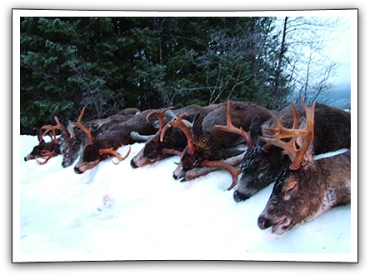These, as with most all of our hunts, are a yacht based hunt. You will stay nights aboard our luxurious 70 foot yacht, and during the day we will use multiple methods to hunt. The deers habits are highly dependent upon time of year, snow fall, rut activity and area. We have found that the best time of year to hunt these trophies is from November 15 through December 15th. The rut typically kicks in around mid November, but if there is not much snow fall yet then the deer can be widely distributed and we may have to hike into the hills to find them.