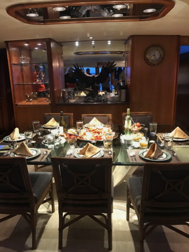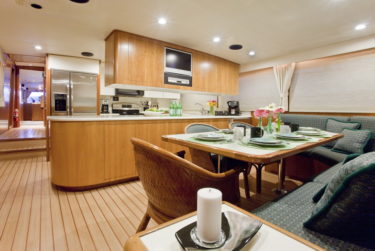 No matter where you sit, you’ll enjoy the 360 degrees of beauty from the expansive windows, anywhere on the boat.